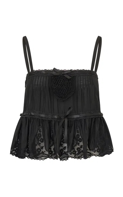 LoveShackFancy Vesperine Lace-Embellished Silk Top - Moda Operandi