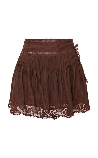 LoveShackFancy Marais Lace-Detailed Silk Mini Skirt - Moda Operandi