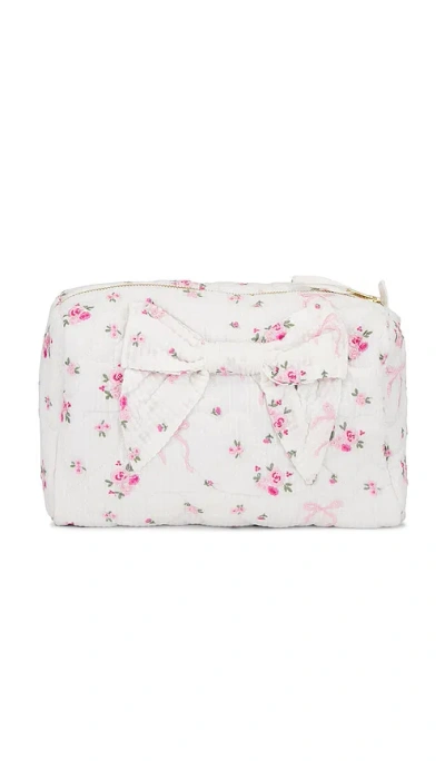 LoveShackFancy Octavia Bag in White. Quilted linen exterior with linen lining. Top zipper closure. One main compartment. Interior slip pocket. Measures approx 11 W x 6 H x 5 D. LESH-WA102. LA052-2363. LoveShackFancy is a collection of hand-dyed and printed silk dresses and separates. It embodies a lux bohemian lifestyle with whimsical pieces that can take you from the beaches of Tulum to an elegant dinner party in NYC.