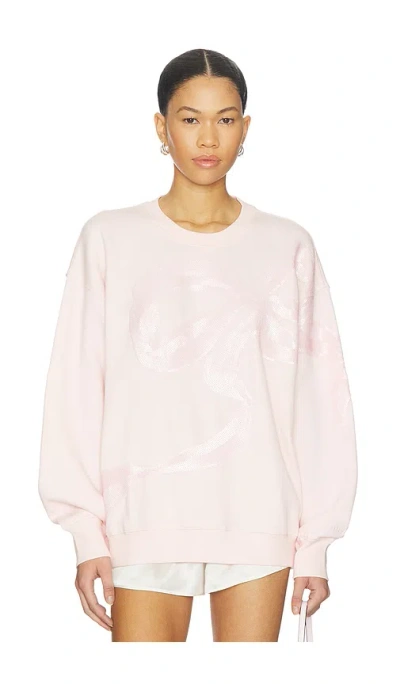 LoveShackFancy Palo Pullover in Pink. Size XS/S. Also in M/L. LoveShackFancy Palo Pullover in Pink. Size M/L. 52% cotton, 48% polyester. Made in India. Hand wash. Pull-on styling. Lightweight fully fashion knit fabric. Ribbed hem. Front sequin bow accent. LESH-WK165. K1587-2995. LoveShackFancy is a collection of hand-dyed and printed silk dresses and separates. It embodies a lux bohemian lifestyle with whimsical pieces that can take you from the beaches of Tulum to an elegant dinner party in NYC.