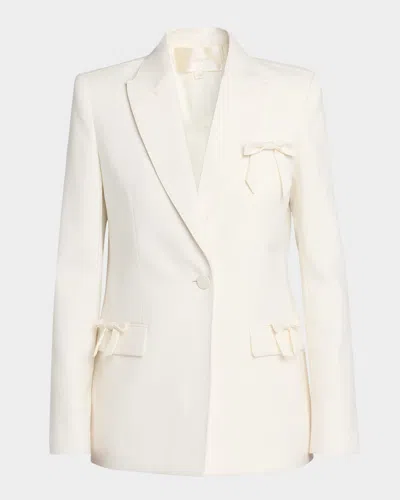 Shayne Wool-blend Bow-embellished Blazer In Neutral