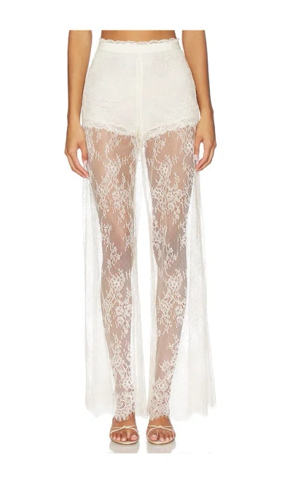 LoveShackFancy Sigrid Pant in Ivory. Size 2. Also in 0, 10, 12, 4, 6, 8. LoveShackFancy Sigrid Pant in Ivory. Size 0, 10, 12, 4, 6, 8. Self: 100% nylon Lining: 100% polyester. Hand wash. Hidden side zipper closure. High-waisted fit. Lace fabric. Item not sold as a set. 32 at the leg opening. LESH-WP54. LP175-2741. LoveShackFancy is a collection of hand-dyed and printed silk dresses and separates. It embodies a lux bohemian lifestyle with whimsical pieces that can take you from the beaches of Tulum to an elegant dinner party in NYC.
