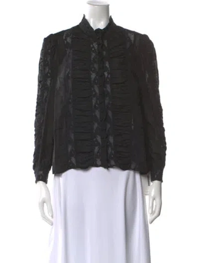 Love Shack Fancy Silk Blouse Black Lace Pattern Lace & Pleated Accents Long Sleeve Button Closure at Front Fit: Tops by Love Shack Fancy typically fit true to size. | LoveShackFancy Silk Lace Pattern Blouse in Black, Women's M