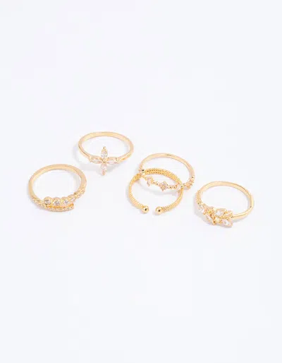 LOVISA Gold Plated Cubic Zirconia Leafy Mixed Ring 5-pack Size Sm In Multi