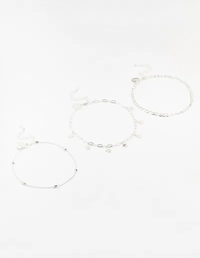 LOVISA Mixed Chain Anklets 3-pack In Silver