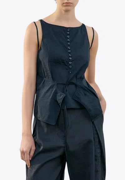 LOW CLASSIC See-through Button Loop Sleeveless Top In Black