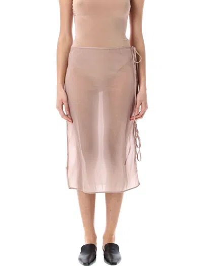 See-throught Button Loop Midi Skirt By Low Classic. Featuring: Tie-fastening At Side Buttons Detail Along Each Side Semi-sheer Mid Length Model Is 1,70 M And Wears Size S Composition: 89% nylon, 11% polyurethane