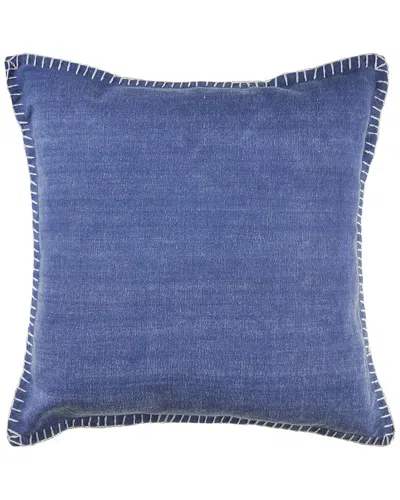 LR HOME Embroidered Edge Bordered Solid Throw Pillow In Blue