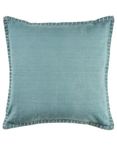 LR HOME Embroidered Edge Bordered Solid Throw Pillow In Teal