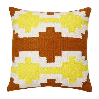 Designed with a balance of leisure and luxury in mind, this woven geometric lattice accent pillow merges well with multiple decor styles from modern and contemporary to southwestern to boho-chic. This design is constructed of durable cotton canvas fabric making it a must-have throw pillow in any busy home or office space. Stand alone or layer with other accents, this patterned bed pillow brings cohesive colors of adobe orange, yellow, and white to your pillow collection with its trendy toned fabric front. 100% Cotton Cover with Polyfill Insert. Hand-woven by artisans in India with keen attention to detail. Zipper closure for easy insert removal. Dimensions: 20" x 20", perfect size for dorms, apartments, living rooms, and bedrooms. Spot Clean: Mix a couple cups of cool water with a teaspoon of dish soap.�Next, dip a section of a clean, white fabric towel into the soapy mixture and wring out as much water as possible. Blot the stain with the white fabric towel and repeat as necessary until the spot is removed.Features: Removable CoverShape: SquareSleeping Position: Multi-PositionUse: IndoorPillow Size: 20 X 20 InMeasurements: 4 Height/Inches, 20 Width/Inches, 20 Length/InchesBack Fabric: WovenFront Fabric: WovenFiber Content: 100% CottonFilling Content: 100% PolyfillComfort Type: SoftCare: Spot CleanDecor Styles: BohemianComfort Level: MaximumMaterial: CottonOwned & Founded: Asian Owned/FoundedCountry of Origin: Imported