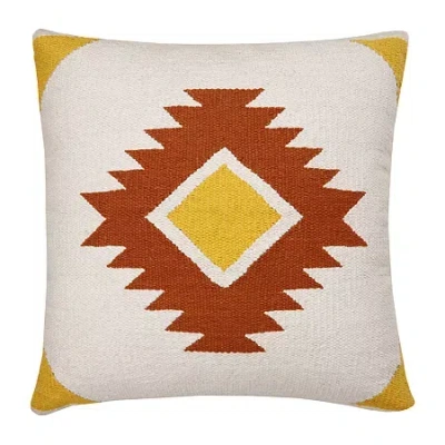 Designed with a balance of leisure and luxury in mind, this woven geometric diamond medallion accent pillow merges well with multiple decor styles from modern and contemporary to southwestern to boho-chic. This design is constructed of durable cotton canvas fabric making it a must-have throw pillow in any busy home or office space. Stand alone or layer with other accents, this patterned bed pillow brings cohesive colors of red-orange, yellow, and white to your pillow collection with its trendy toned fabric front. 100% Cotton Cover with Polyfill Insert. Hand-woven by artisans in India with keen attention to detail. Zipper closure for easy insert removal. Dimensions: 20" x 20", perfect size for dorms, apartments, living rooms, and bedrooms. Spot Clean: Mix a couple cups of cool water with a teaspoon of dish soap.�Next, dip a section of a clean, white fabric towel into the soapy mixture and wring out as much water as possible. Blot the stain with the white fabric towel and repeat as necessary until the spot is removed.Features: Removable CoverShape: SquareSleeping Position: Multi-PositionUse: IndoorPillow Size: 20 X 20 InMeasurements: 4 Height/Inches, 20 Length/Inches, 20 Width/InchesBack Fabric: WovenFront Fabric: WovenFiber Content: 100% CottonFilling Content: 100% PolyfillComfort Type: SoftCare: Spot CleanDecor Styles: BohemianComfort Level: MaximumMaterial: CottonOwned & Founded: Asian Owned/FoundedCountry of Origin: Imported