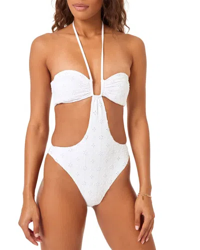 Introducing the L*Space Marina Bitsy One-Piece in White, the perfect blend of style and comfort for your next beach day. This high-leg one-piece features side cut outs and beaded straps for a chic look. With removable padding and a built-in bra, you'll feel supported and confident all day long. The back clasp closure ensures a secure fit. Made from 80% Nylon and 20% Spandex, this item is lined for added comfort. Hand wash recommended. Don't miss out on the opportunity to support a great cause - between June 1, 2024, and June 30, 2024, 10% of retail sales from purchases in this boutique will be donated to the Trevor Project. Make a difference while looking fabulous in the L*Space Marina Bitsy One-Piece.