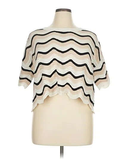 L Space Poncho, Size: X-Large. Item Details: Tan, Chevron/Herringbone Pattern, Cold Shoulder Neckline, Short Sleeve, Women's Sweaters & Sweatshirts, 100% Cotton