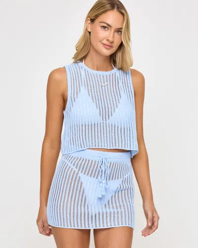 Crochet never goes out of style. The Sander Top has a flattering cropped hemline with a sleeveless silhouette. Style this with the matching skirt for a cohesive look, or wear alone over a bikini. Cropped Tank; Crochet Knit; 100% Cotton ; Style # SANTP25;
