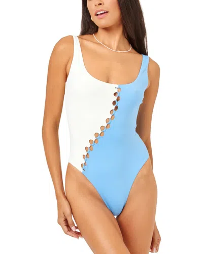 Introducing the L*Space Solstice Bitsy One-Piece, a must-have addition to your swimwear collection. This one-piece swimsuit features the signature Bitsy coverage with a scoop neck and ladder colorblock detailing for a stylish touch. The slip-on styling makes it easy to wear, while the Aura/Cream colorway adds a touch of sophistication. Made from 80% Nylon and 20% Spandex, this item is lined for added comfort. Hand wash recommended. Imported from the renowned brand L*Space, known for their impeccable fit and quality. Elevate your beach look with this chic one-piece swimsuit.