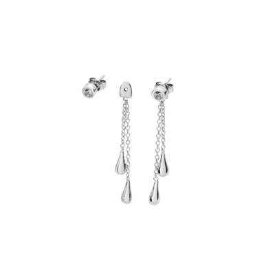 These unique earrings offer versatility, allowing you to wear the studs alone or add the water droplet drops for a striking look. The drops can also be attached to any other stud earrings, offering a fun and innovative way to update your jewelry collection. With their delicate design, these earrings make a bold statement without compromising on elegance. Made from 925 Sterling Silver with Rhodium Overlay Includes removable 6cm drops Weight: 4.5 grams (overall) White topaz accents Interchangeable stud and jacket design Butterfly back fastening Hallmarked in the UK Includes a designer gift box and bag