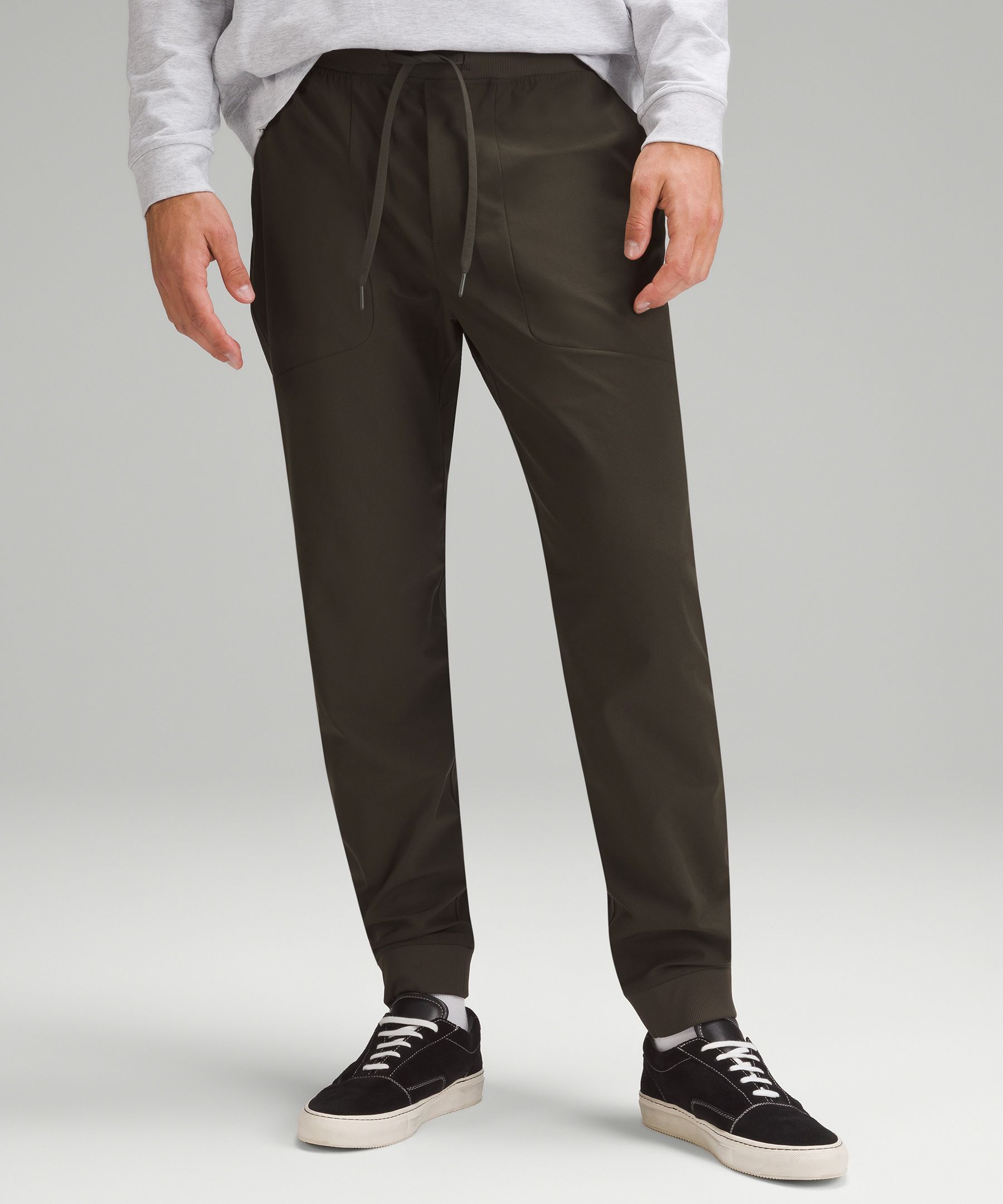 These sleek joggers feature our ABC technology, making them an obvious choice for recreation or travel. Designed for On the Move. Streamlined fit that gives glutes and thighs breathing room, then tapers from knee to hem:Our ABC technology uses an ergonomic gusset to remove tension from the crotch of our pants:Intended to sit just above ankle for 32"-34" inseam. Waistband drawcord can be worn inside or out. Front pockets with hidden media and coin sleeves. Secure back pocket. Everyday Performance, WarpstremeTM Fabric. Lining: 100% Recycled polyester. Rib: 88% Nylon, 12% Lycra elastane. Body: 52% Recycled polyester, 48% Elastomultiester.