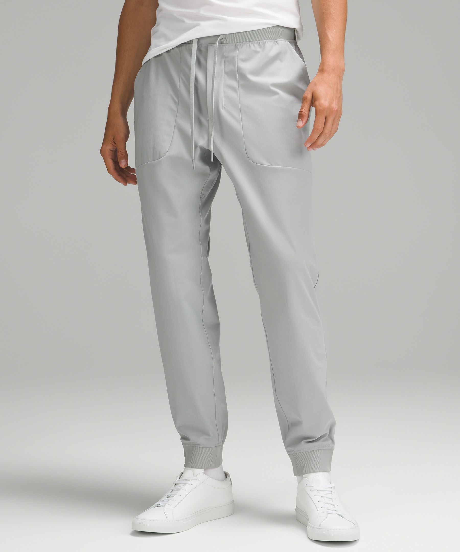 These sleek joggers feature our ABC technology, making them an obvious choice for recreation or travel. Designed for On the Move. Streamlined fit that gives glutes and thighs breathing room, then tapers from knee to hem:Our ABC technology uses an ergonomic gusset to remove tension from the crotch of our pants:Intended to sit just above ankle for 32"-34" inseam. Waistband drawcord can be worn inside or out. Front pockets with hidden media and coin sleeves. Secure back pocket. Everyday Performance, WarpstremeTM Fabric. Lining: 100% Recycled polyester. Rib: 88% Nylon, 12% Lycra elastane. Body: 52% Recycled polyester, 48% Elastomultiester.