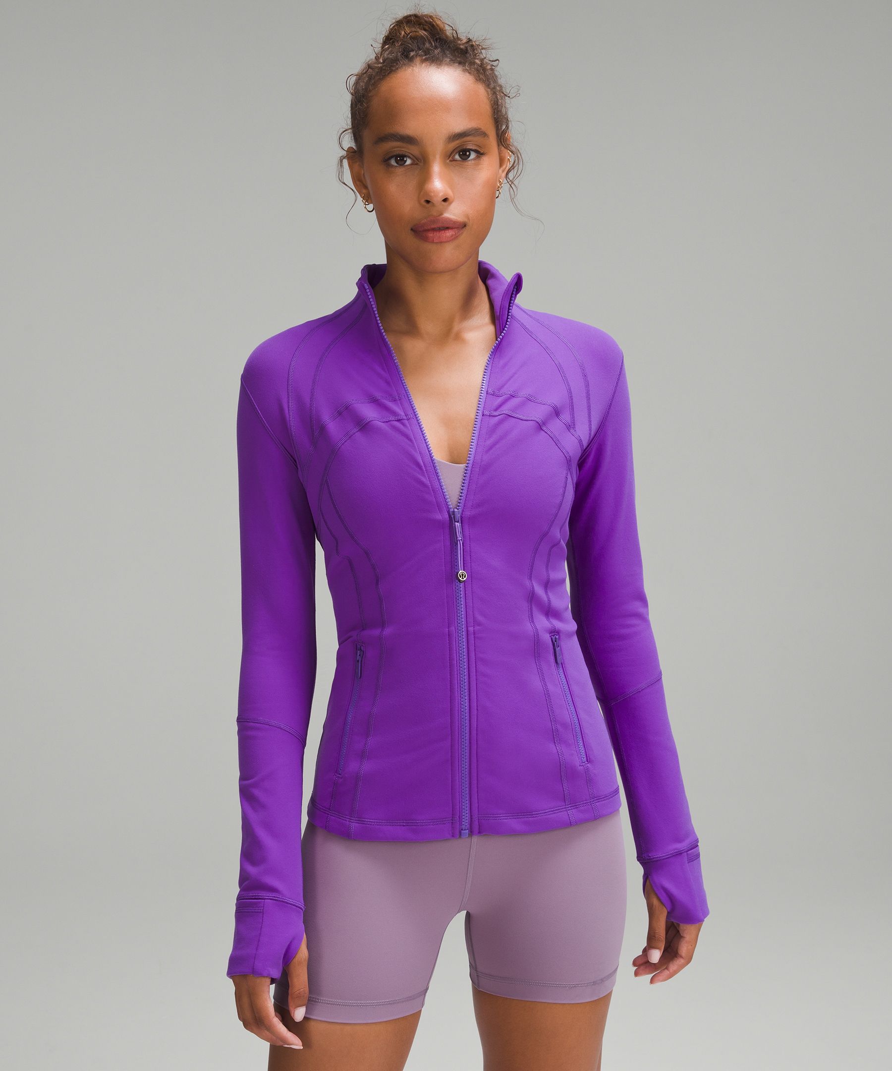 Whether you're up for adventure or ready for downtime, our fan-favourite Define Jacket, powered by Luon fabric, has a feel-good fit that can do it all. Designed for On the Move. Skims your body:Sits below the waistband for moderate, everyday coverage. Thumbholes and Cuffins keep sleeves down and chills out. Secure front pockets. Locker loop for easy hanging. Zipper garage keeps chafe in check. Back vent strategically placed to provide airflow.