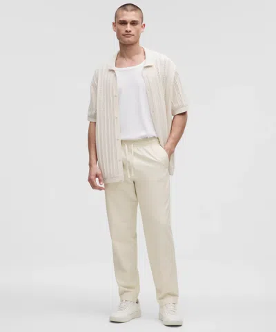 Their job is: beach. Made from airy fabric with a hint of breezy linen, these laid-back pants are ready for your warm-weather plans. Designed for Casual. Roomy fit through glutes and thighs, then tapers to hem:Intended to sit at ankle for 32"-34" inseam. Hand pockets with hidden phone and coin sleeves, Zippered back pockets, Waistband drawcord helps you customize the fit. LuluLinen Fabric.