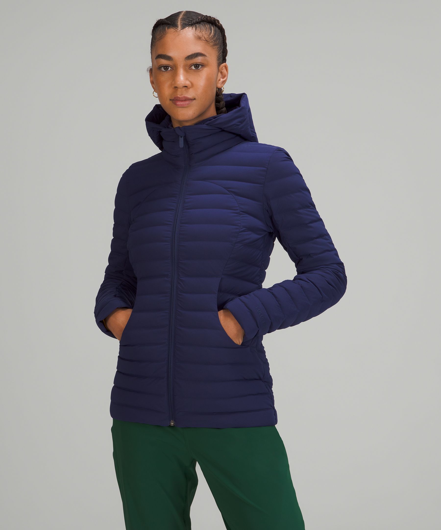 Layering season is here. Wear this packable, travel-friendly down jacket on its own or under a rain-proof jacket for added warmth. Designed for On the Move. Slim fit skims your body. Easy-access exterior pocket with a hidden card pocket. Removable hood. Removable stuff sack for easy packing. 'Wash with like colours', 'Machine wash cold', 'Do not bleach', 'Tumble dry low', 'Do not iron', 'Do not dry clean', 'Imported'. Water-Repellent, DiamondStretchTM Fabric. Knuckle side pocket: 100% Polyester. Filling: 85% Grey goose down, 15% Grey Goose Feathers. Pockets: face: 91% Nylon, 9% Elastane, coating: 100% Polyurethane. Body: 85% Nylon, 15% Elastane. Trim filling: 100% Polyester.