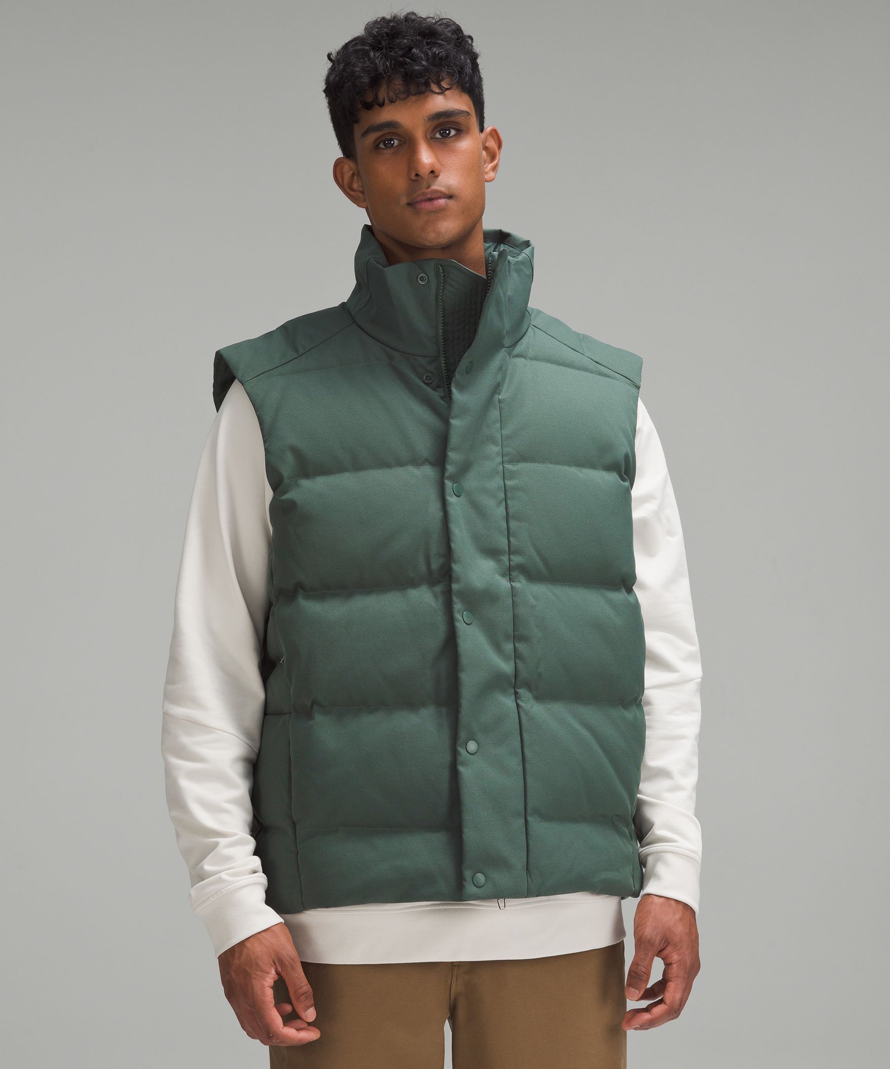 Peak cold-weather comfort has arrived. Take winter by storm in this wonderfully warm puffer vest insulated with plush channels of 600-fill-power down. Designed for On the Move. Classic fit falls away from your body with room for layering. Zippered exterior pockets with a hidden phone sleeve. Multiple pockets on the inside for small essentials.