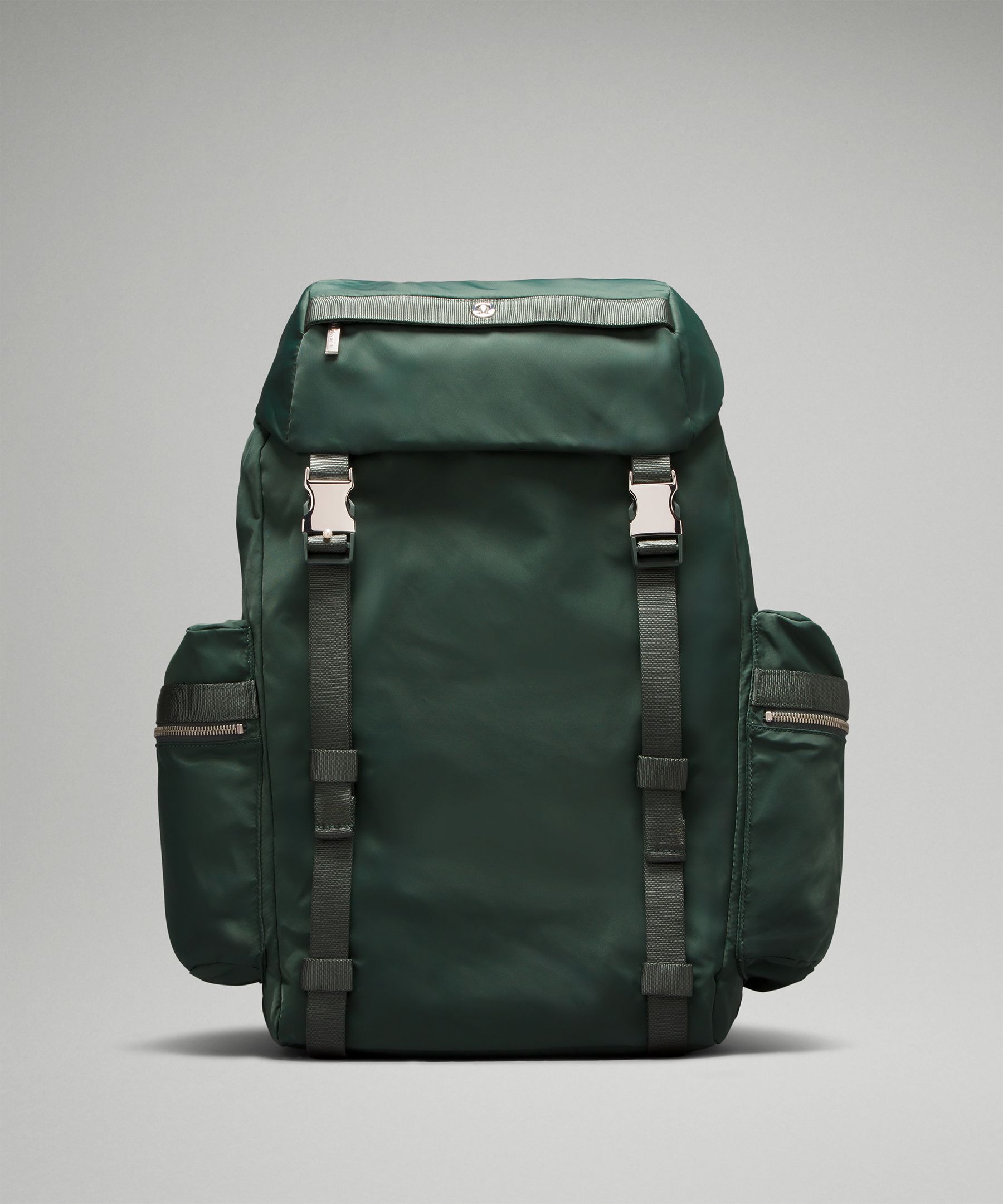 A day full of plans calls for a backpack full of storage options. The drawstring opening allows for easy access to stowed items, while buckle closures keep your bag securely shut. Designed for On the Move. Dimensions: 36cm x 15.5cm x 51cm (14.2" x 6.1" x 20.1"):Volume: 25L. Side pockets for quick access to water bottle and small items. Zippered exterior pockets. Exterior padded pocket fits a 16" laptop. Adjustable exterior straps to secure your yoga mat or jacket. Trolley-compatible sleeve. Interior pockets keep you organized and your sweaty gear separate.