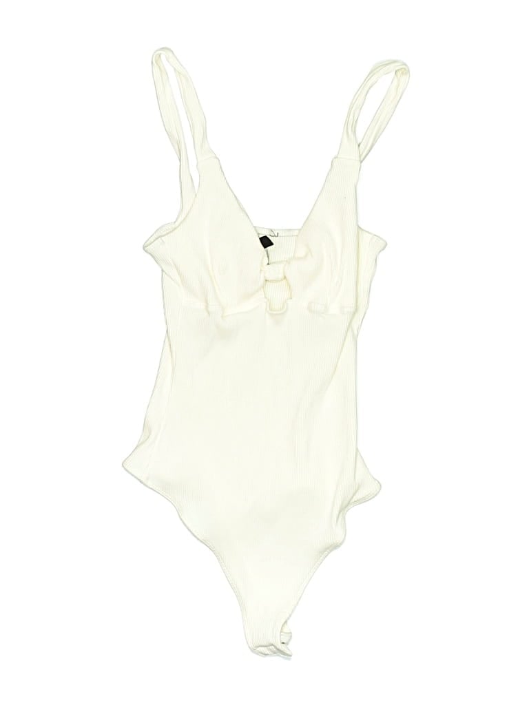 Lulus Bodysuit, Size: Medium. Item Details: Ivory, Plunge Neckline, Sleeveless, Women's Tops, Rayon/Spandex