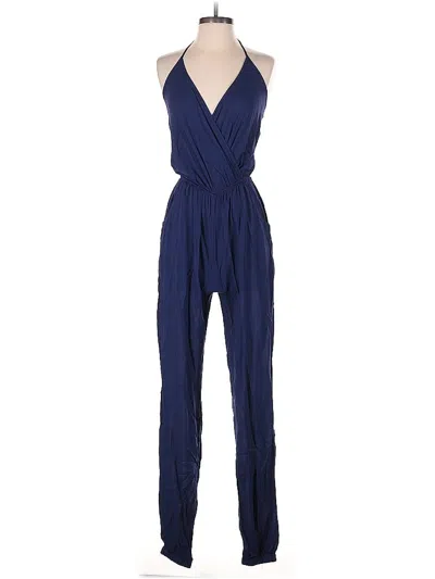 Lulus Jumpsuit, Size: Small. Item Details: Blue, Solid Pattern, Plunge Neckline, Skinny Leg, Sleeveless, Ruched, Women's Dresses, 100% Rayon