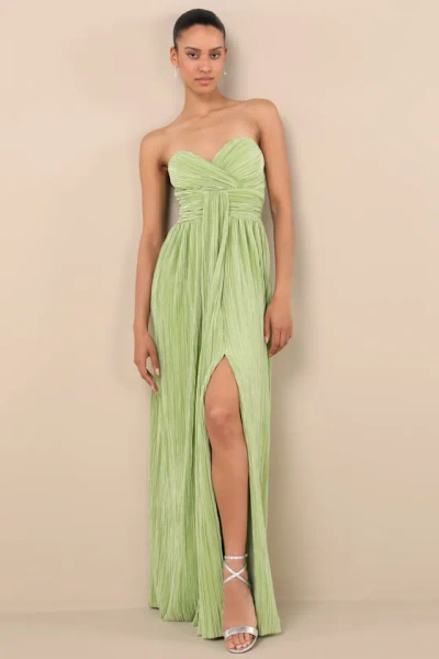LULUS Oswin Lime Green Satin Plisse Strapless Maxi Dress