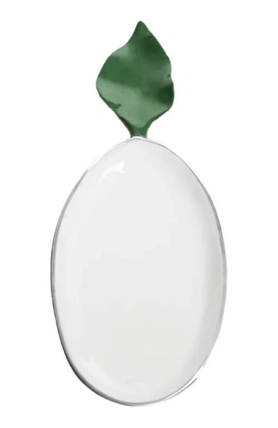 The Verdura Oval Appetizer Plates bring organic charm to your dining experience, with swirling green and white enamels evoking vibrant, natural landscapes. Crafted from recycled aluminum and individually hand-finished, these plates are perfect for serving small bites or tapas, each plate a unique expression of artistry and nature’s beauty. DetailsDimensions :Round - 1"H x 8"W x 14.75"LOval - .75"H x 6"W x 18.75"LFinishes : Green, WhiteMaterial : Aluminum, EnamelUse and CareGiven its handmade and hand-finished nature, variations in the piece are to be expected and celebrated.No two pieces are exactly alike. Food safeHand wash with mild soap, water, and towel dry. Do not use abrasives or chemicals to clean the metal as it may scratch and discolorNot dishwasher safeWill not tarnish