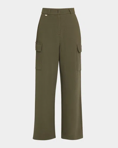 Lune Active "Moon" classic cargo pants in a textured fabrication Approx. 14.2" rise; 30.7" inseam; 42.9" outseam High rise Slanted side and back welt pockets Functional cargo pockets Full length Straight legs Button/zip fly; belt loops Organic cotton/polyester/elastane Machine wash Imported