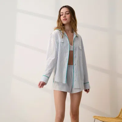 Light, crisp, and made for open-window days. Crafted from our breathable Airy Cotton poplin, this made-to-lounge short balances relaxed comfort with a polished finish. The pull-on elastic waistband keeps the fit effortless, while contrast piping and side seam pockets add thoughtful detail. Woven from ultra-soft 60s combed cotton yarn and finished with non-toxic dyes, the fabric feels luxuriously lightweight with that signature crisp-yet-soft feel. Naturally breathable and cooling, it's the kind of short made for slow mornings, sunny afternoons, and anywhere the day decides to wander. Pair it with the Airy Cotton Piped Button Down for the whole look.