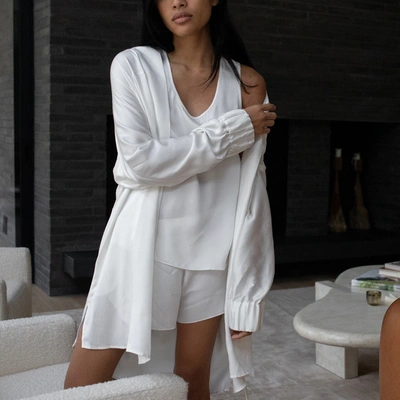 Washable Silk Robe In Tranquil White