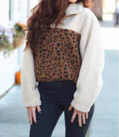 LUSH Leopard Sherpa Pullover In Cream Brown In Multi