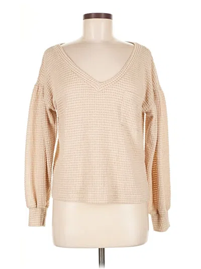 Lush Pullover Sweater, Size: Medium. Item Details: Tan, V Neck, Long Sleeve, Studded, Junior Tops, Polyester/Rayon/Elastane