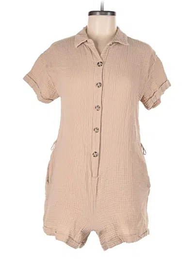 Lush Romper, Size: Small. Item Details: Tan, Collared Neckline, Short Sleeve, Junior Dresses, 100% Cotton