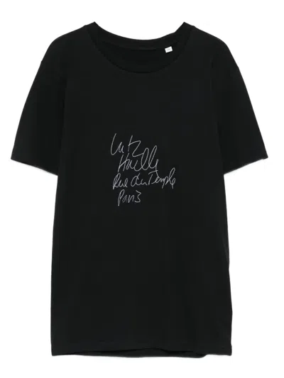 black short sleeves crew neck organic cotton lettering detail straight hem