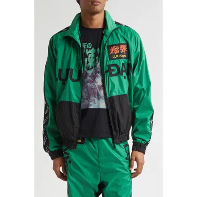 The Vietnamese designer gives a sporty '80s staple rebellious edge with this colorblocked nylon windbreaker featuring slithering snakes in place of standard track stripes. Front zip closure Stand collar Split kangaroo pocket 100% nylon Machine wash, line dry Made in Portugal Designer Clothing