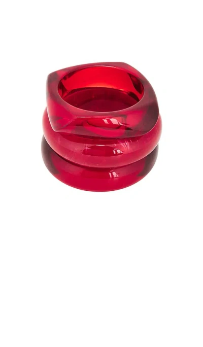Luv AJ The Formentera Bangle Set in Red. Luv AJ The Formentera Bangle Set in Red. Resin bangle set. Set of 3. Measures approx 3.14 in diameter. LUVA-WL838. VE25-B-FBS-R. Luv AJ designer Amanda Thomas finds inspiration in vintage whim and modern sensibilities. Since founding her line of accessories in 2005, Thomas has forged working relationships with designers like Corey Madley and Rachel Pally, as well as with stylists and fashion editors. Today, her pieces are a hit among the celled set, with ladies like Ashlee Simpson, Paris Hilton, and Lindsay Lohan sporting her quirky, retro-inspired pieces.