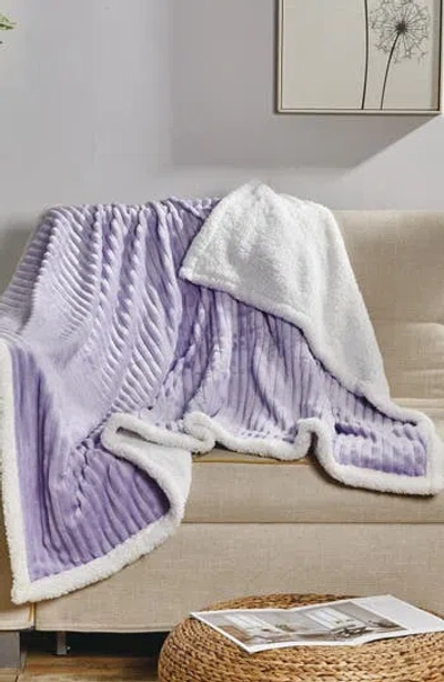 LUXURY HOME Corduroy Faux Shearling Throw Blanket In Purple