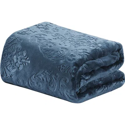 LUXURY HOME Embossed Versailles Throw Blanket In Blue