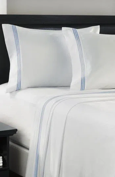 LUXURY HOME Embroidered Line 3-piece Sheet Set In Blue
