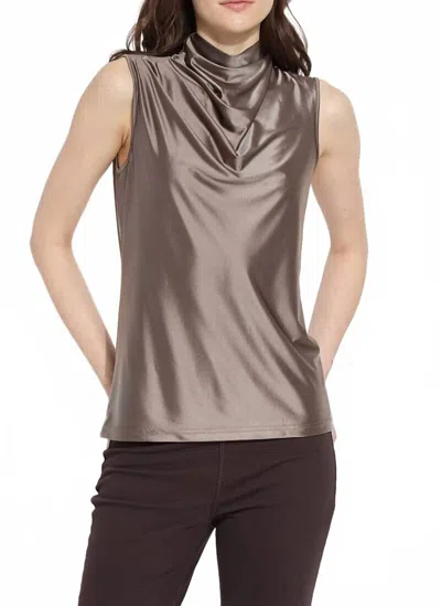 Pair this with your favorite jeans and slides for your next girls night out.Introducing the Irina Stretch Satin Turtleneck Top by Lysse, an elegant choice in ash for evening events. This sleeveless top features a sophisticated turtleneck with a stylish front drape, crafted from a wrinkle-free Stretch Satin Jersey with a composition of 77% Nylon and 23% Spandex for a comfortable fit. Closure - Pull on. Care - Machine wash and line dry, ensuring ease of maintenance.