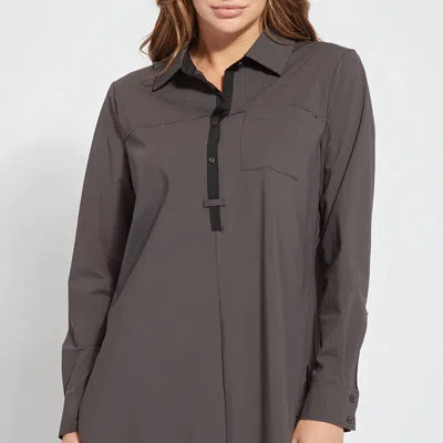 Pair this with your favorite jeans and slides for your next girls night out. Showcases contrast-color Black trim at the neck and front placket, Black binding on the sleeves, and a raw-edge front pocket, back yoke and legging-friendly high-low hem.