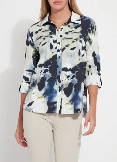 LYSSÉ Roll Tab Connie Printed Button Down Shirt In Creative Brush In Multi
