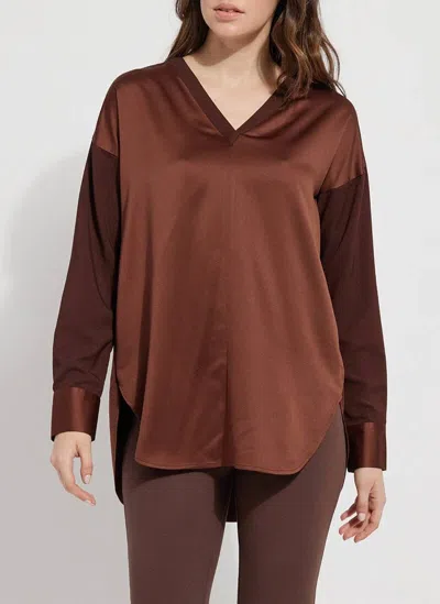 The Token Pull over Top is an oversized, legging-friendly blouse crafted from luxe, easy-care Satin. Combining shiny and matte Satin, the Token Pull Over Top showcases drop shoulders, cross-front V-neck, center front seam, back yoke with double pleat, and high-low legging-friendly hem. Partner this Satin top with leggings or tuck into bootcut jeans. Add brown booties and our Treasured Sweater Wrap for a great work or leisure look. Gently steam to remove wrinkles. Oversized; size down for smaller fit Model is 5'10", wearing size S 100% polyester