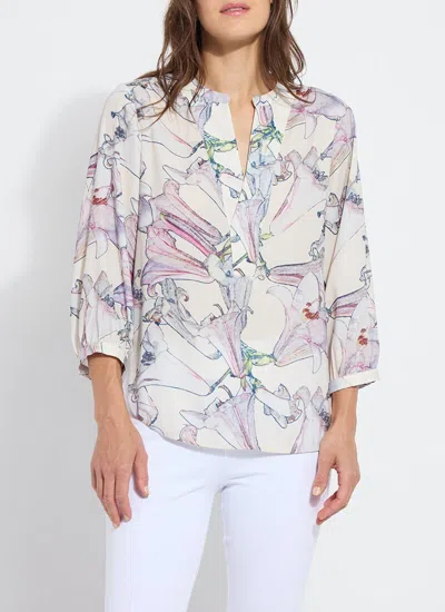 Pair this with your favorite jeans and slides for your next girls night out.Embrace elegance with the Women's Yola Pull On Blouse by Lysse, featuring an exclusive French Bouquet pattern to elevate your summer wardrobe. This blouse boasts long balloon bracelet sleeves and a chic open crossed front placket. Made from 100% lightweight satin polyester, its relaxed fit ensures comfort for any beach day occasion. Closure - Button closure. Dry instructions - Tumble dry. Model is 5'10" and wears a size S.