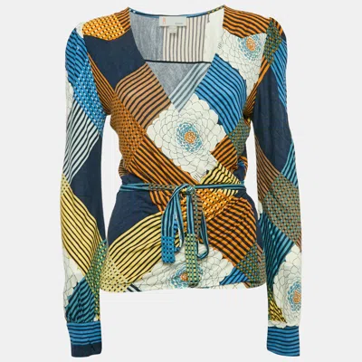Pre-owned Multicolor Printed Knit Wrap Top L