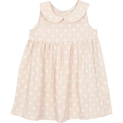 This girls' dress in a soft beige hue features a delicate white daisy print for a timeless look. Designed with a classic Peter Pan collar and a gently gathered waist, it offers a breezy, comfortable fit. The sleevelessdesign makes it perfect for warm days, while the button-back closure ensures easy dressing. Fabric Care 83% VISCOSE 17% NYLON Machine Wash Cold | Line Dry Do Not Bleach This girls' dress in a soft beige hue features a delicate white daisy print for a timeless look. Designed with a classic Peter Pan collar and a gently gathered waist, it offers a breezy, comfortable fit. The sleevelessdesign makes it perfect for warm days, while the button-back closure ensures easy dressing. Fabric Care 83% VISCOSE 17% NYLON Machine Wash Cold Line Dry Do Not Bleach